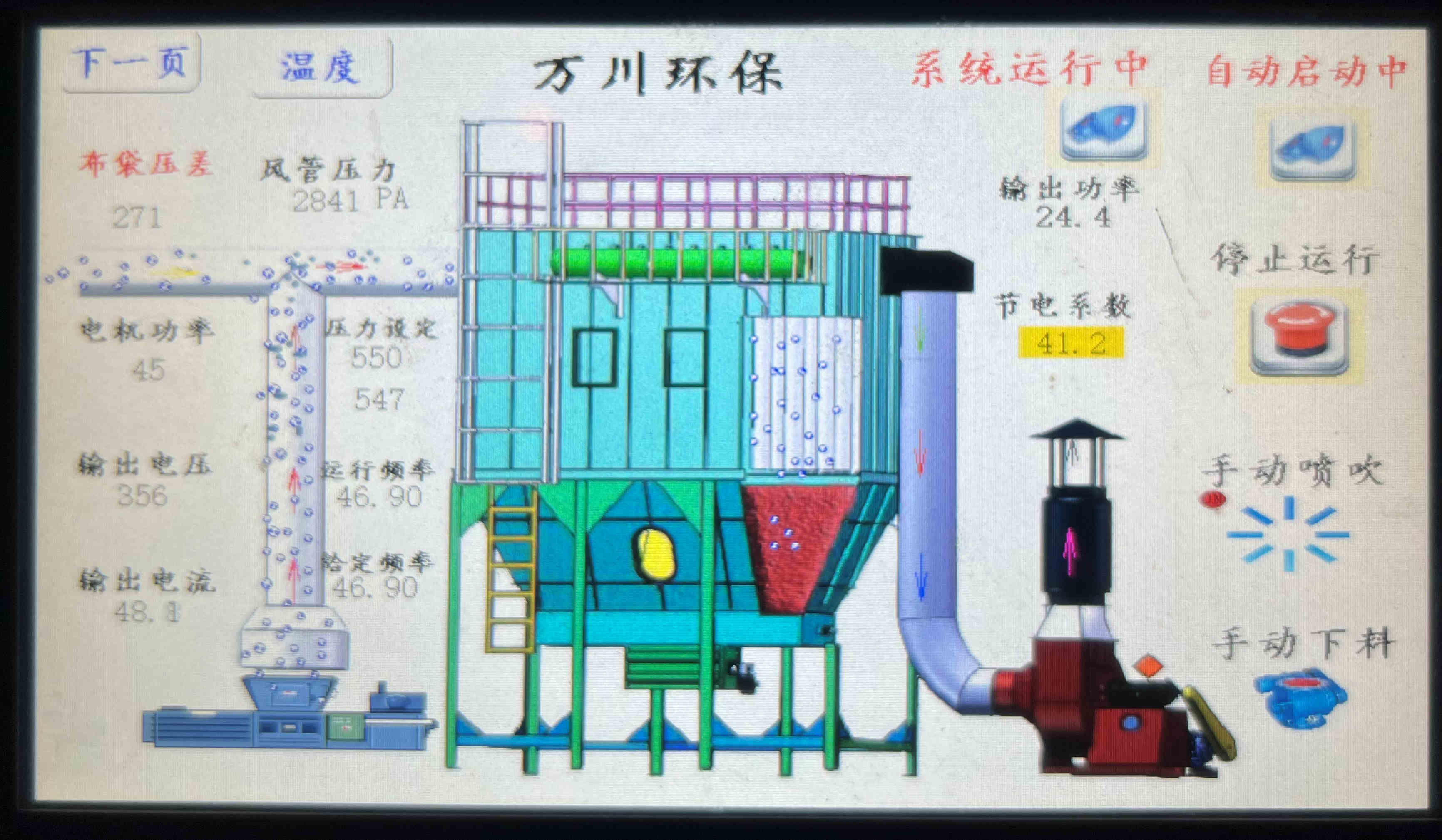 (萬川環保布袋除塵器配套電控系統 一鍵啟停操作方便快捷,簡單穩定)                            (萬川布袋除塵器配套消防噴淋管路,為安全運行保駕護航)