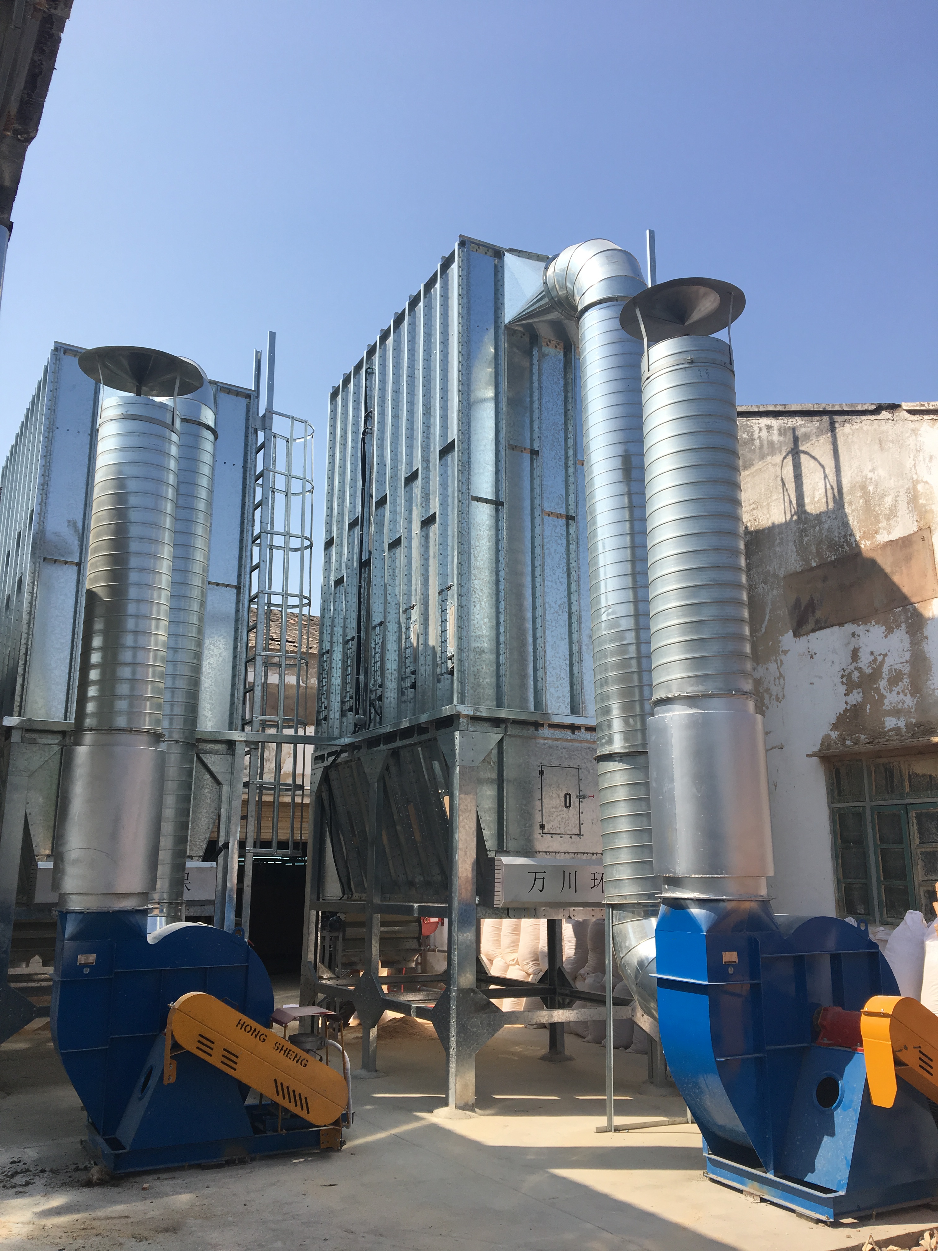 根據(jù)車間設(shè)備布置情況,由于木工機械吸塵口所需的風量及風壓、風速要達到要求,并預留一些風量,因此我們采用過濾能力較強脈沖袋式除塵器,匹配相應的排塵風機,達到最佳吸塵效果。