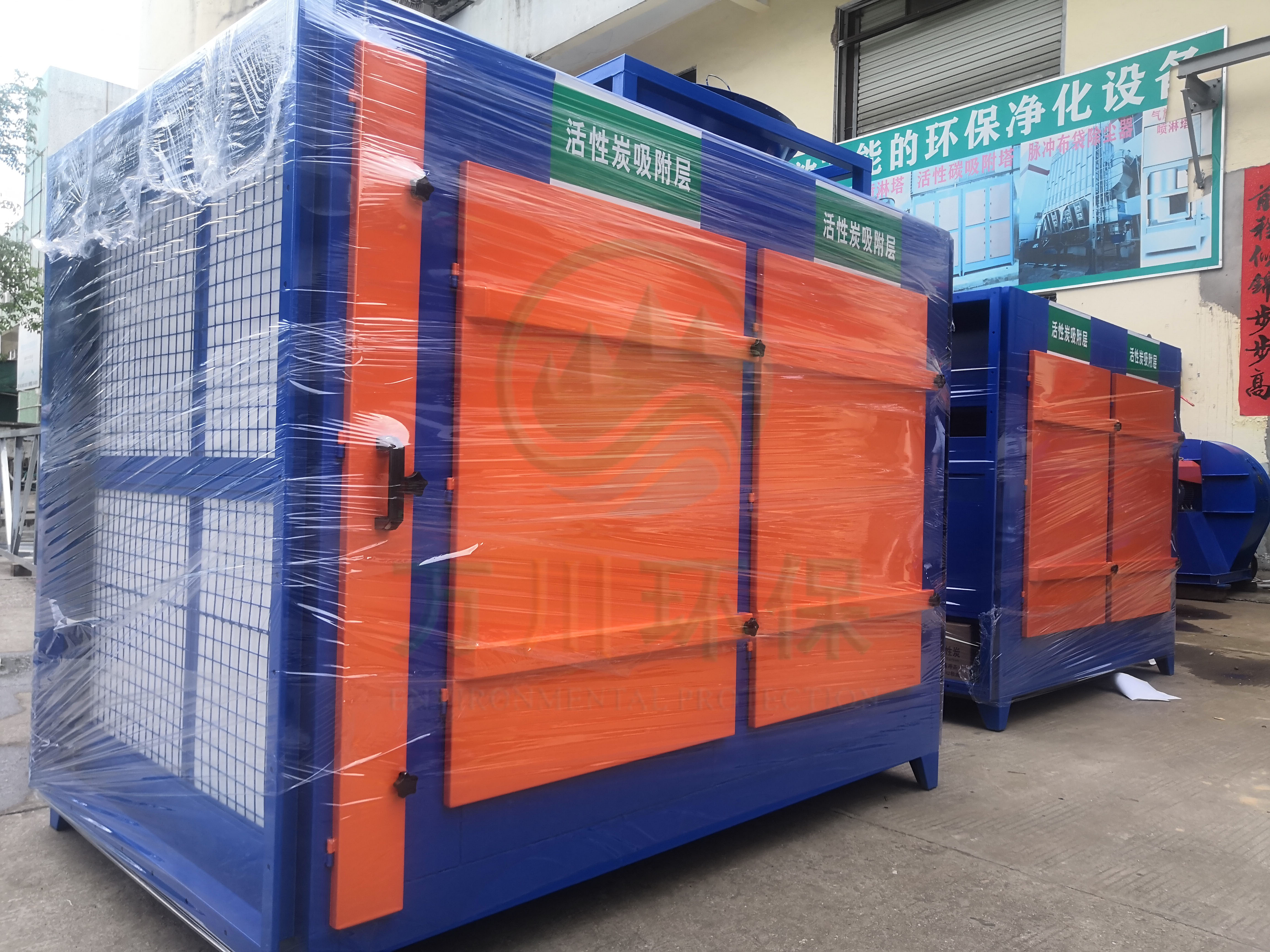 根據(jù)廢氣類型和場(chǎng)地需求我們采用兩級(jí)活性炭吸附法對(duì)其進(jìn)行處理。配套兩臺(tái)1萬(wàn)風(fēng)量的碳鋼材質(zhì)活性炭吸附塔與大功率離心風(fēng)機(jī),自帶自動(dòng)化控制系統(tǒng)。