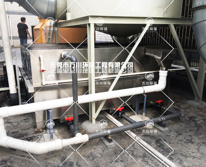 粉塵在風機的作用下進入風管,粉塵進入噴淋塔后,噴淋系統(tǒng)從塔中部向下均勻地噴出水,白炭黑粉塵與水結(jié)合沉淀到污水池里,干凈的空氣排出,達到凈化的目的。
